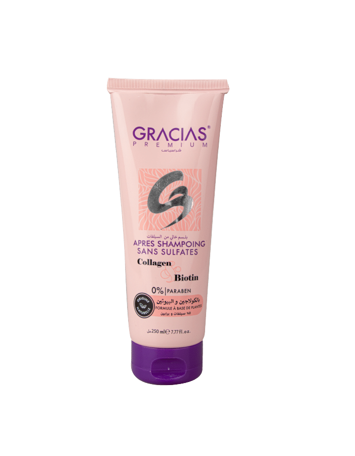Le conditioner Biotine&Collagène GRACIAS est un soin léger qui démêle tout en apportant volume, texture et force aux cheveux fins.