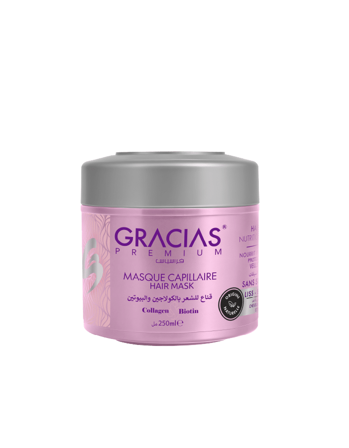 Le masque Biotine&Collagène de GRACIAS est un soin densifiant et volumateur qui nourrit sans alourdir, idéal pour redonner corps et tenue aux cheveux plats.